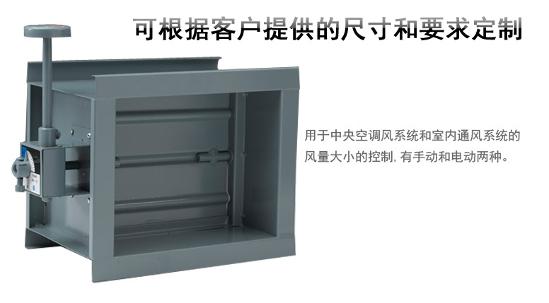 風量調節閥是用于中央空調風系統和室內通風系統的風量大小的控制,有手動和電動兩種,有矩形和圓形。可根據 客戶提供的尺寸和要求定制。